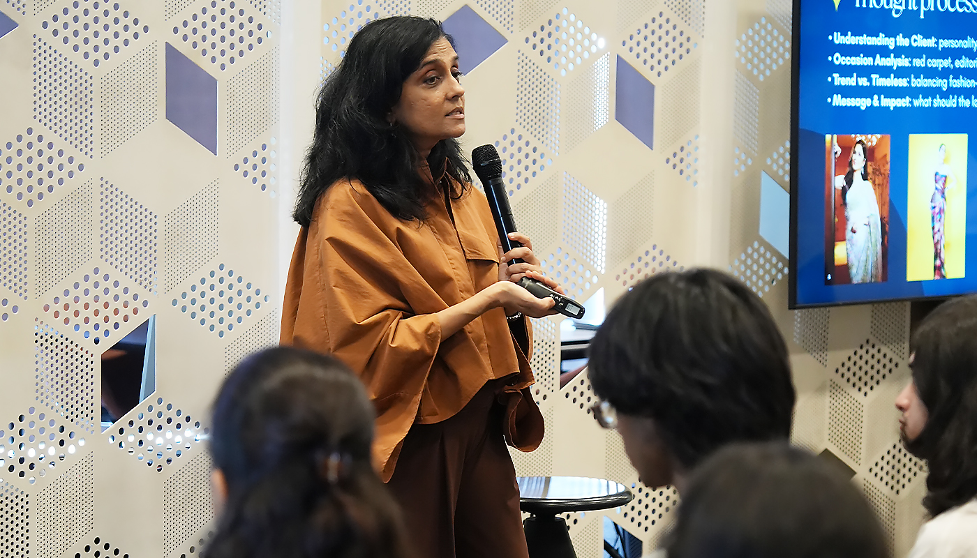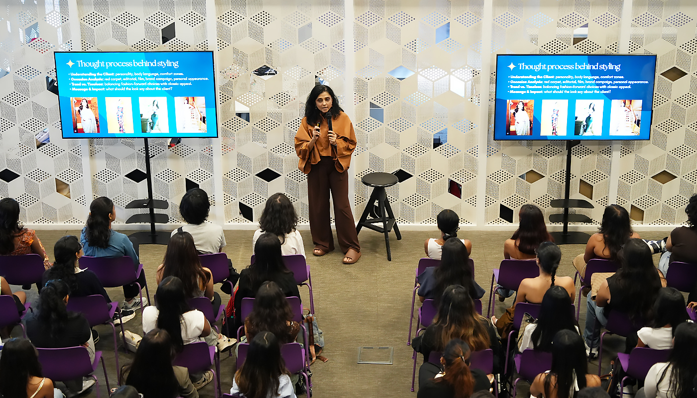 在迎新周的大师课上,Ami Patel 分享了她的理念:造型不仅仅是服装的搭配,更是一种叙事方式。每一个精心策划的造型都必须传递身份、文化与个性。在这种框架下,时尚是一种对话,是连接穿着者、观众与文化的交流。